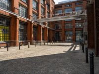 An industrial warehouse in Berlin, Germany. The cobblestone surface adds an urban touch to this art district. Open spaces and factories dot the cityscape of this vibrant European metropolis.