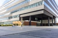 This image showcases the modern architecture and cityscape of Barcelona, Spain. The building is a high-rise corporate headquarters with a mixed-use design. The concrete facade reflects the urban design of the city and creates a shadow and shade effect. The road surface and curb are made of composite material, adding to the contemporary feel. The high-rise offers a reflection of the surrounding city life. The image captures the bustling business district of Barcelona, with its elevated buildings and hard shadows. This photo represents the vibrant and dynamic urban environment of the city.