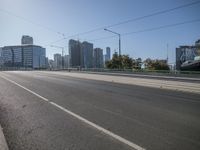 A modern urban cityscape with clear skies. Office buildings and business districts line the asphalt roads. The city's architecture and urban design creates a bustling neighborhood in this residential area.