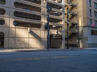 Urban city life in Atlanta, Georgia. Modern architecture and urban design highlighted by hard shadows on asphalt roads. A bustling day scene with iconic parking decks and garages in the USA.