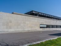 Modern urban architecture in Berlin, Germany. Clear sky above a city road lined with sleek pavers and modern designs. A glimpse into the vibrant city life of Europe.