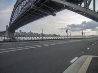 an image of some bridge over a highway in the day time setting with a stoplight on