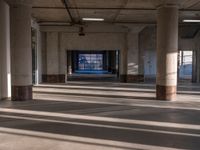 the sunlight shines through the window of an empty building filled with columns and pillars