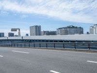 Modern urban cityscape of Tokyo, Japan. A skyline dominated by modern architecture and bridges. Clouds hover over the city, contrasting with the sleek asphalt roads and Armco barriers. A typical day in bustling Japan.