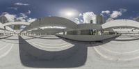 the view of an urban area that has been viewed through two circular mirrors and is completely empty