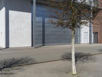 Modern architecture in Germany with an open space courtyard. Empty parking garage blends with urban surroundings. Tree casts a shadow on the building. A unique blend of nature and modernity in Europe.
