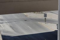 A person riding his bicycle on a sunny day at the corner of a street in Toronto, Canada. The bike is moving on the asphalt road, passing under a bridge and overpass. The residential suburban area around is lined with houses and driveways. The elevated bridge creates shadows and shades on the road surface. The urban design of the city is visible in the composite material flooring and the hard shadows cast by the buildings. The image is a composition of parallel lines, showcasing the urban lifestyle in Toronto, Ontario.
