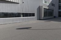 This image captures a young man skateboarding on a sunny day in Toronto, Canada. He is skateboarding on the paved parking space outside a large building in the city's business district. The modern architecture and urban design of the building can be seen in the background. The black-and-white photo highlights the contrast between the man and the urban environment. This photo represents the vibrant and bustling atmosphere of Toronto's business district.