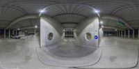 a 360 - fisheye image shows the inside of the building that has three circles on it