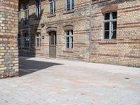 A classic brick wall in the city of Berlin. The clear sky adds to the urban charm, showcasing the unique architecture and design of Europe. A hidden courtyard in the Hinterhof reveals a glimpse into the city's history.