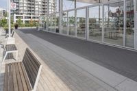 A modern architecture building in the heart of Toronto's business district. The sleek lines and urban design stand out against the cityscape. The walkway and flooring add a touch of elegance to the public space.