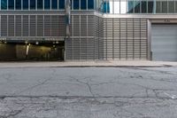 This image captures the bustling city life in Toronto, Canada. The photo showcases a modern urban design with a metal and glass wall. In the foreground, there is an open building with a door and two fire hydrants. Behind it, other buildings can be seen. The scene is set during the day, with a paved road and a parking lot lined with curbs. This photo represents the vibrant and dynamic atmosphere of city living in Toronto.