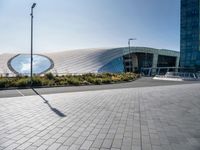 This image captures a modern office building located in the bustling city of Amsterdam, Netherlands. The curved facade of the building stands out against the urban landscape. The two circular windows add a unique architectural touch to the structure. The sidewalk in front of the building is made of smooth asphalt, and street lamps illuminate the road surface. This photo showcases the contemporary design and vibrant city life of Amsterdam. It is perfect for visualizing concepts related to urban design, architecture, and business.