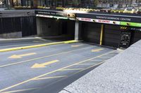 This is an image of a city road in Toronto, Ontario, Canada. The asphalt road is surrounded by high-rise buildings and parking garages. The concrete infrastructure, including the road surface and curbs, is well-maintained. The cityscape shows a bustling urban metropolis with a blend of residential and public spaces. In the foreground, there is an elevated highway ramp leading to the entrance of a highway. This photo represents the modern urban design and infrastructure in Toronto.