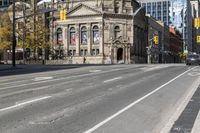 This is an image of a modern architecture building in downtown Toronto, Canada. The high-rise office building stands tall against the clear sky, reflecting the city's urban design and metropolitan atmosphere. The bustling city life can be seen along the thoroughfare, with lanes of traffic flowing on the well-maintained asphalt road. The cityscape showcases the busy business district and the diverse neighborhoods that make up the town. This photo captures the essence of urban living and the vibrant energy of Toronto, Ontario.