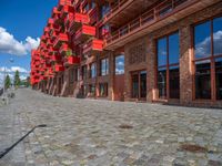 Daytime in Berlin, a modern European city with urban architecture. Cobblestone streets lead to residential areas with brick walls. Courtyards showcase modern design in this urban quarter.