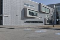 A modern office building in the bustling business district of Toronto, Canada. Its sleek facade and metal walls stand out against the urban landscape. The surrounding open spaces and parking lot add to the urban design.