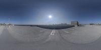A sprawling parking lot in downtown Los Angeles, empty of cars but filled with people strolling under the clear sky. The city's iconic skyline stands tall in the background, showcasing its architectural wonders.