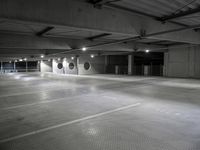 This is an image of a cityscape in Berlin, Germany at night. The modern architecture of the buildings is illuminated by the urban lights, casting a grey tint over the city. The composite material of the roads and parking decks reflects the modernity of the city's urban design. The open spaces and parks provide a contrast to the concrete streets. The image captures the energy and style of city life in Europe. The dark night sky is dotted with fixtures that represent the electricity and gas infrastructure of the city.