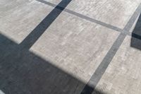 the shadow of an umbrella is on a tiled floor with a window and light coming in from a small window