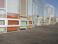 A modern glass-walled office building in Berlin, Germany. The multicolored facade stands out against the clear sky. The urban design and surface of the building reflect the vibrant city life of Europe's bustling business district.