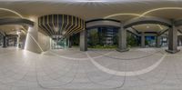 A bustling street in Tokyo, Japan, filled with vibrant city life. The modern architecture and artificial lights create a stunning urban design. People can be seen enjoying shopping and dining at various storefronts and restaurants. The photo, taken with a fisheye lens, captures the energetic atmosphere of Tokyo at night.