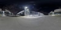 A modern architectural marvel in Toronto's financial district. The low-lying building features a monochrome facade and a straight road leading to it. The clear night sky illuminates the city, highlighting the urban design and infrastructure.