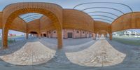 A glimpse of an urban environment in China, featuring brick buildings, roofs, and a walkway. The distorted pictures showcase the classic architecture and the interplay of light and shadow in this bustling city.