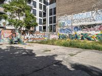 This stock photo showcases an urban scene in Berlin, Germany. It features an empty area with graffiti on the side, creating a gritty and artistic atmosphere. In the foreground, a woman is riding a motorcycle, adding movement and energy to the composition. The open space, known as a Hinterhof in German, is part of Berlin's vibrant art district. The concrete surface and rugged appearance give it an edgy urban design. This captivating image captures the spirit of Berlin's graffiti culture and the city's creative ambiance. Perfect for projects related to urban exploration, street art, and European cities.
