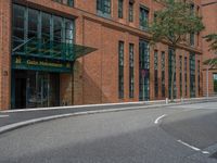 Urban scene in Hamburg, Deutschland. Classic architecture and brick walls create hard shadows on asphalt roads. City life in Europe captured on a sunny day with distinct urban design elements.