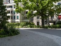A modern residential area in Berlin, Germany. The city's unique architecture and urban design are showcased through the combination of modern buildings, cobblestone roads, and lush greenery. Experience the vibrant city life of Europe.