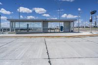 A panoramic view of Toronto's urban landscape. The city is characterized by its modern architecture and residential buildings. Clear skies reveal a concrete street with a glass wall and an Armco barrier. A bustling city with highway ramps and a busy bus stop.