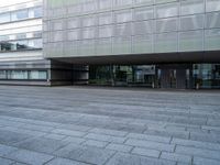 A modern office building in Berlin's bustling financial district. Sleek and minimalist architecture stands out against the empty concrete sidewalk. The urban design of this city in Europe showcases a perfect blend of business and open space.