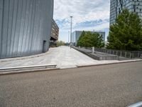 This is an image of a modern cityscape in Holland, Europe. The photo showcases the city's urban design and architecture, with modern buildings and tree-lined roads. The asphalt roads and road surfaces are complemented by the curbs and thoroughfares. The sky is partially covered by clouds, creating a dynamic backdrop for the city. This image represents the bustling city life in Holland and the blending of modern and traditional elements in its urban landscape.