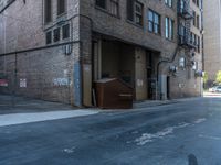 A city street in Salt Lake City, Utah, with urban buildings and a parking garage. The road is lined with parked cars and the skyline of the city is visible in the distance. A typical day in an urban alley-way in the USA.