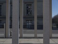 A classic example of architecture in Berlin, Germany. This stock photo showcases a modern building with a symmetrical facade and large windows. The urban design of the city is evident with the tree-lined road and grey asphalt. The museum in the foreground adds to the city life vibe of Berlin. The combination of wood and composite materials used in the building's construction gives it a unique look. Perfect for illustrating urban design, city life, and modern architecture in Berlin, one of Europe's vibrant cities.