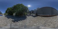 a reflection image of a street in front of two buildings in a 360 - vision position