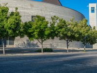 A modern urban landscape in Salt Lake City, Utah. The concrete walls and asphalt roads create a stark contrast against the clear sky. The hard shadows cast by the architecture add depth and drama to the scene.