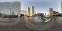 A panoramic view of a modern cityscape in Los Vegas, USA. Skyscrapers and office buildings line the concrete streets, creating a futuristic and urban atmosphere. The city is bustling with shopping and business activities, offering an open space of opportunity.