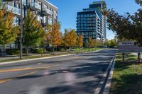 A modern shopping mall in Toronto, Ontario. The urban architecture and clear sky create a vibrant cityscape. Hard shadows cast by the buildings add a dramatic touch to the scene.