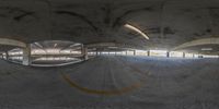A modern urban skateboard park with a clear sky backdrop. Symmetrical architecture and open spaces create a vibrant public area. The empty park features a variety of vehicles and people, highlighting city life.