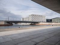 This image captures the city life in Berlin, Germany. The modern architecture and urban design are showcased in the cityscape. The clear sky provides a beautiful backdrop for the buildings and the surface of the empty concrete road on the bridge. The panoramic view displays the urban landscape of Europe's dynamic capital. This photo represents a typical day in Berlin, where the bustling city life and stunning architecture blend seamlessly.