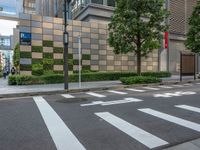 A busy road in Tokyo's urban business district. Crosswalks and modern architecture dominate the scene, showcasing the city's bustling energy. Office buildings and a well-designed urban landscape complete the picture of Tokyo's vibrant city life.