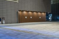 A view of a modern architecture building in Shanghai, China at night. The city is illuminated with artificial lights creating a vibrant urban atmosphere. The sleek lines and open spaces of the building's design are highlighted by the dark surroundings.