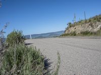 the street is paved and empty of people and motorcycles parked near a mountain area and trees