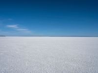 the vast expanse of salt, a plain, and blue sky are seen in this landscape