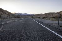 This is a breathtaking image of an empty country road at sunrise in Utah, USA. Surrounded by majestic mountains and red rock formations, the road surface stretches endlessly through the highland landscape. The clear sky above creates a stunning contrast with the desert vegetation and low hills. This endless road represents the freedom and adventure of exploring the beautiful countryside. It is the perfect image to capture the tranquility and beauty of dawn in Utah.