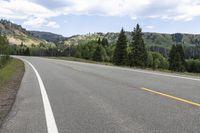 there is an empty highway on the mountain side with mountains in the background during daytime