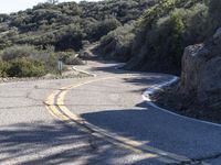 This is an image of a scenic road in California, USA. The asphalt road winds through a picturesque landscape of mountains, grass, and trees. The road surface is visible, showing the lane lines and curves of the mountain pass. The surrounding wilderness and rocks showcase the natural geology of the area. This road is part of a thoroughfare that leads to a state park, offering a perfect escape into nature. The image captures the beauty and serenity of California's highlands, making it an ideal destination for nature enthusiasts and road trip enthusiasts alike.
