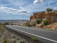 A rural landscape in Utah with an asphalt road stretching into the distance. Clear sky and fluffy clouds create a serene day in nature. The road leads to untouched wilderness in the heart of the USA.
